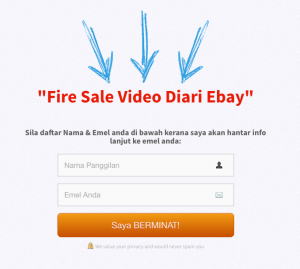 Selepas itu, barulah anda hasilkan satu webpage atau dikenali sebagai Squeeze Page untuk anda mula mengumpul senarai emel prospek yang berminat dengan tawaran promosi anda.