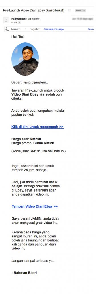 Ini salah satu emel follow up yang saya gunakan untuk hantar kepada subscriber, dan ia menghasilkan jualan 4 angka dalam tempoh kurang 12 jam!